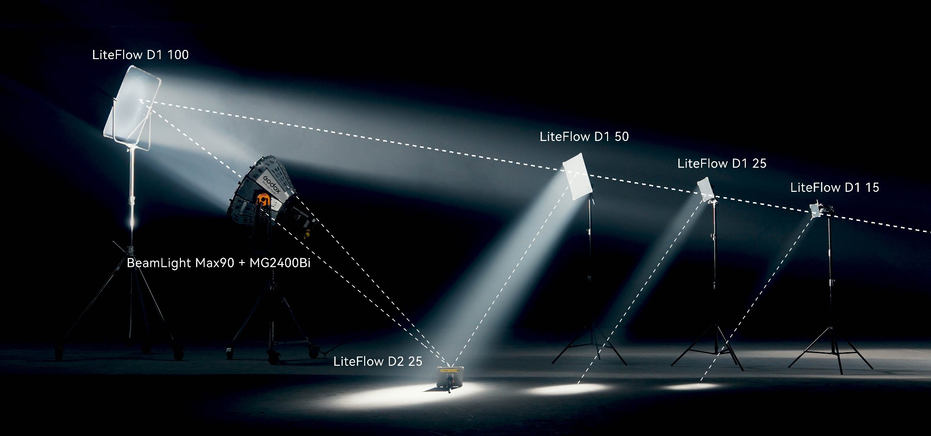The BeamLight Max90 significantly enhances the throw distance and illuminance of G-Mount LED fixtures, such as the KNOWLED MG2400Bi and MG1200Bi. When combined with the MG2400Bi, it offers astonishing brightness comparable to traditional 12K HMI fixtures while reducing power requirements and simplifying setup, transforming on-set lighting dynamics.