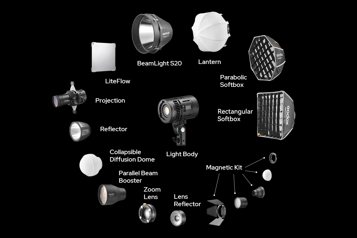 The magnetic kit feature Godox's micro-optical design and work with lens reflectors to control light area and diffusion angle.
