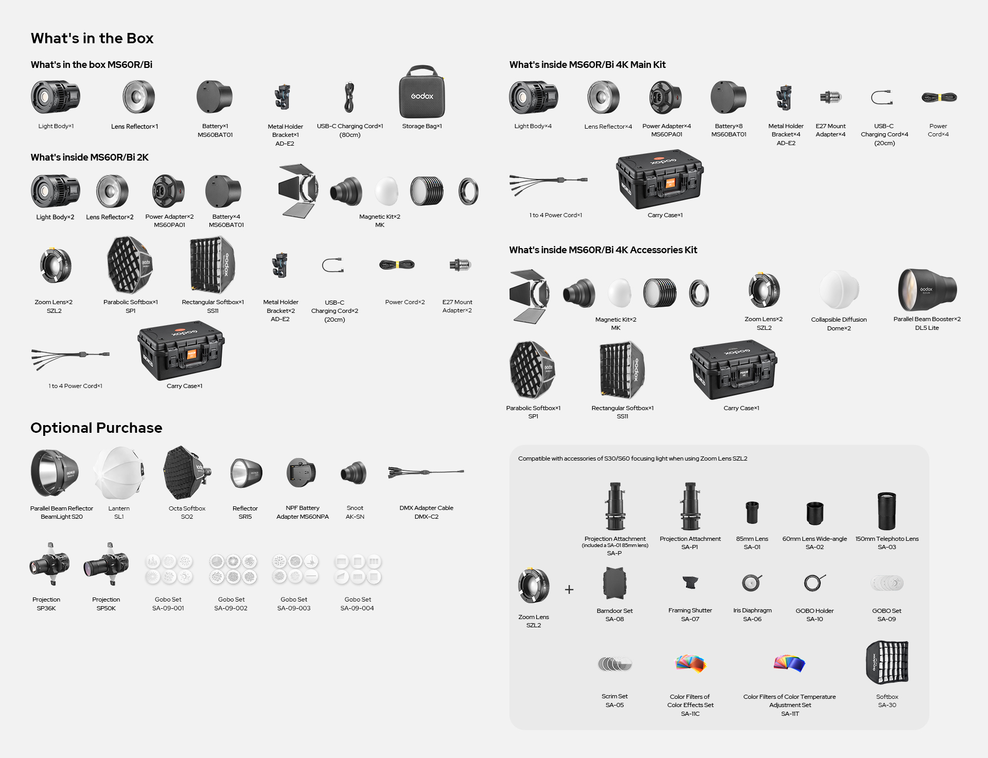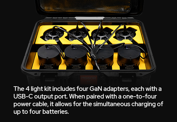 The MS60 comes in 2 light kit and 4 light kit, featuring a range of accessories and a custom flight case. The durable case protects the light and accessories, with a smart, layered design to maximize storage space for easy transport.