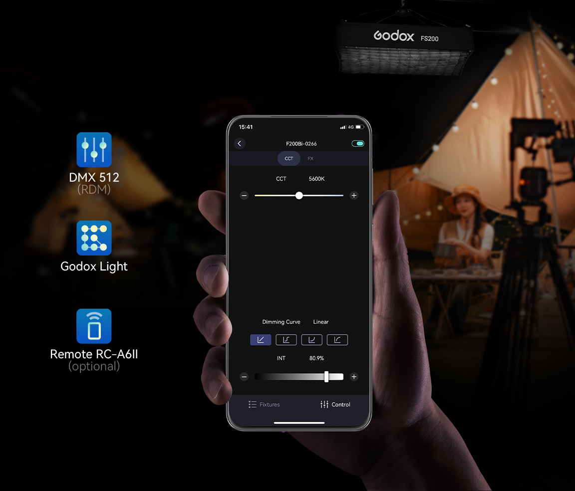 In addition to the control box, the KNOWLED Flexible LED Mat can be controlled through DMX (supporting RDM protocol), 2.4G wireless control, and the upgraded Godox Light APP version 3.0. With the Godox TimoLink RX, this light also supports CRMX control.