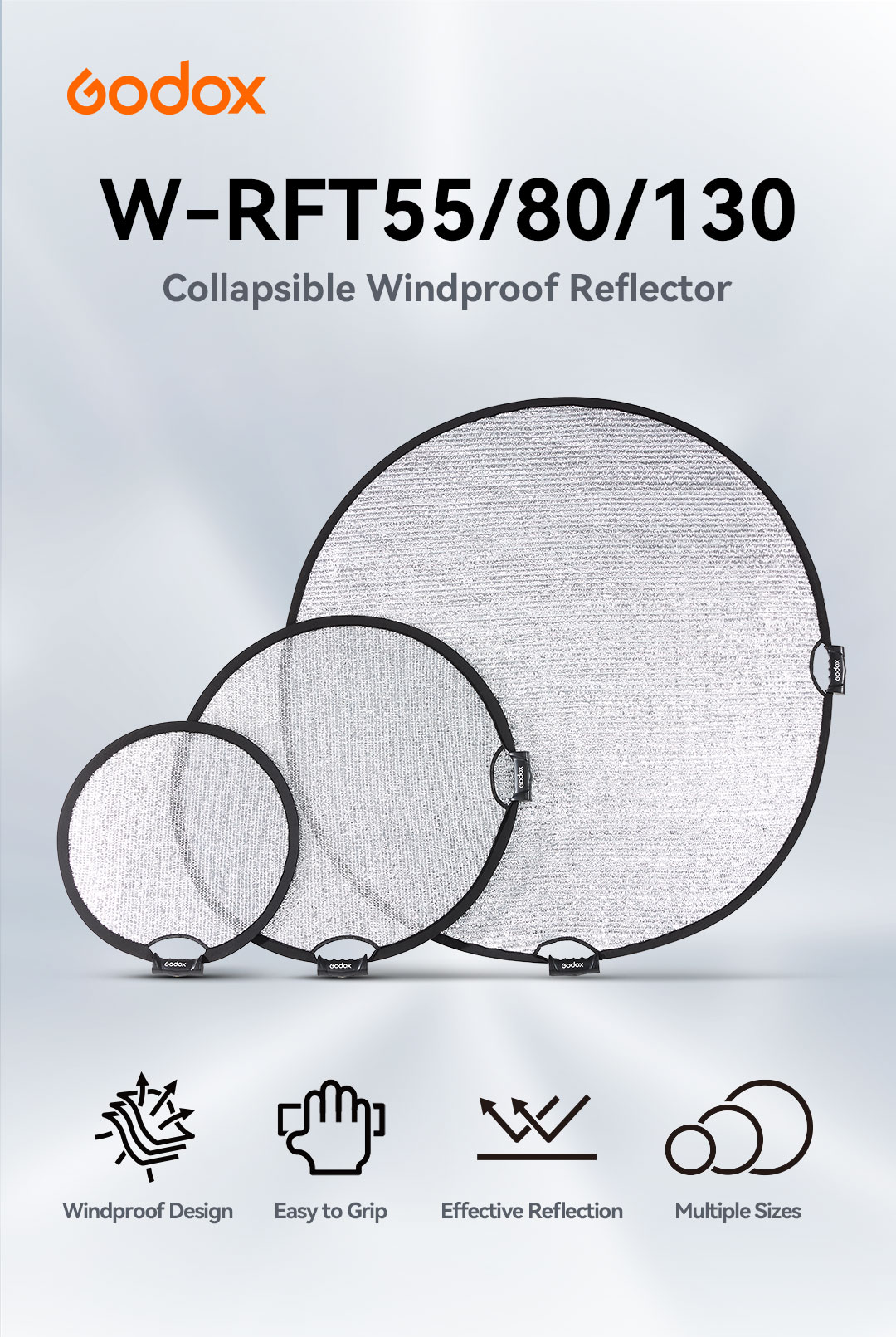 Collapsible Windproof Reflector W-RFT55/80/130