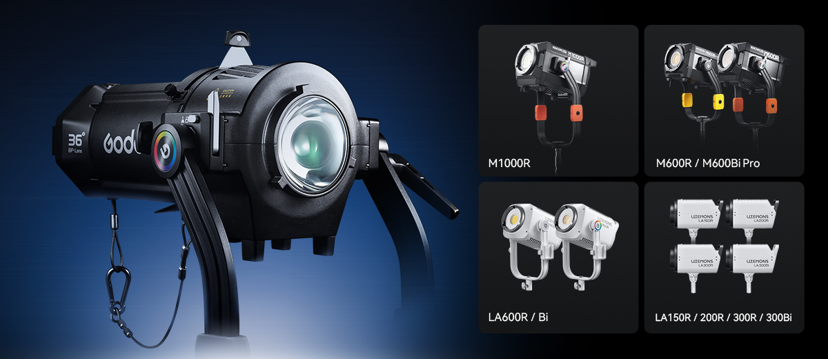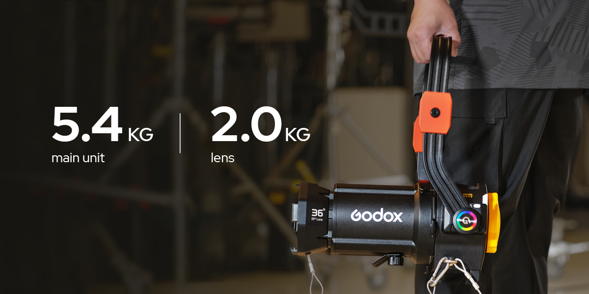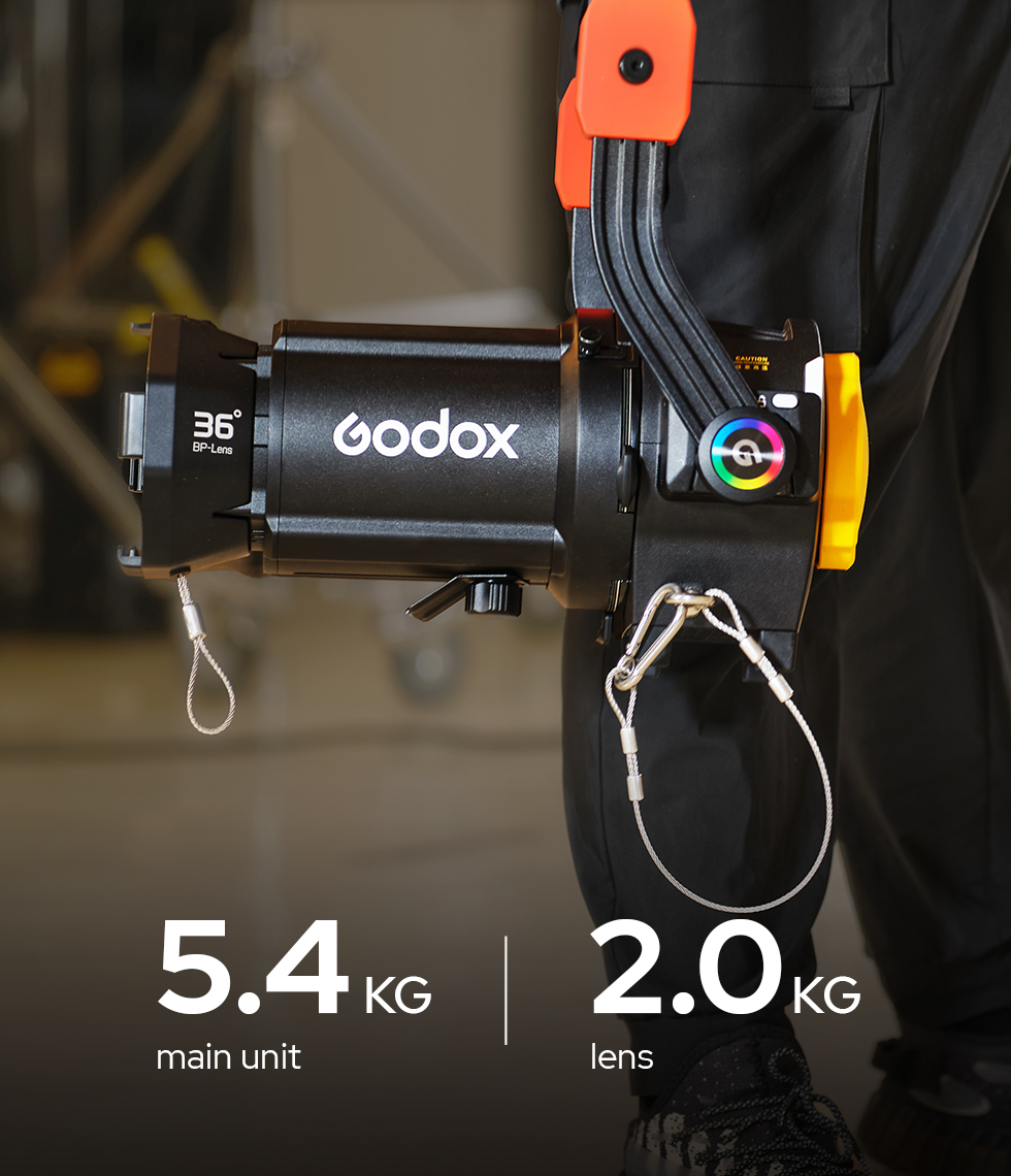 Weighing just 5.4kg (main unit) + 2kg (lens), the BP-19K/26K/36K supports high-power flat Bowens-mount fixtures while maintaining a compact build and enabling effortless one-person setup. Engineered for efficient transportation and easy setup, it reduces operational effort—whether for overhead rigging or quick installation.