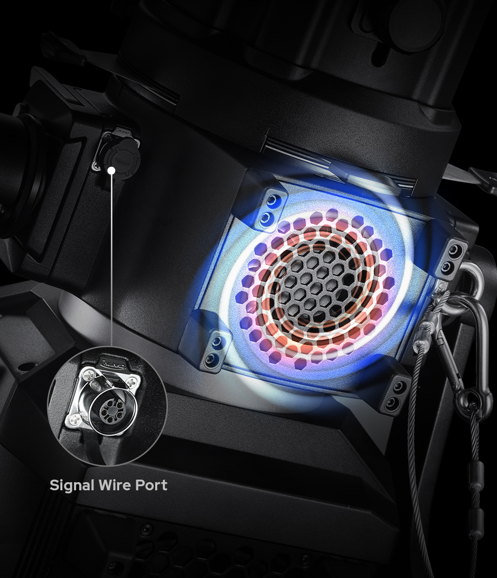 With a built-in high-efficiency cooling fan connected to the light body via signal cable, and combined with its metal body and perforated ventilation design, the BP-19K/26K/36K ensures safe, stable operation even under intensive use of high-power fixtures.