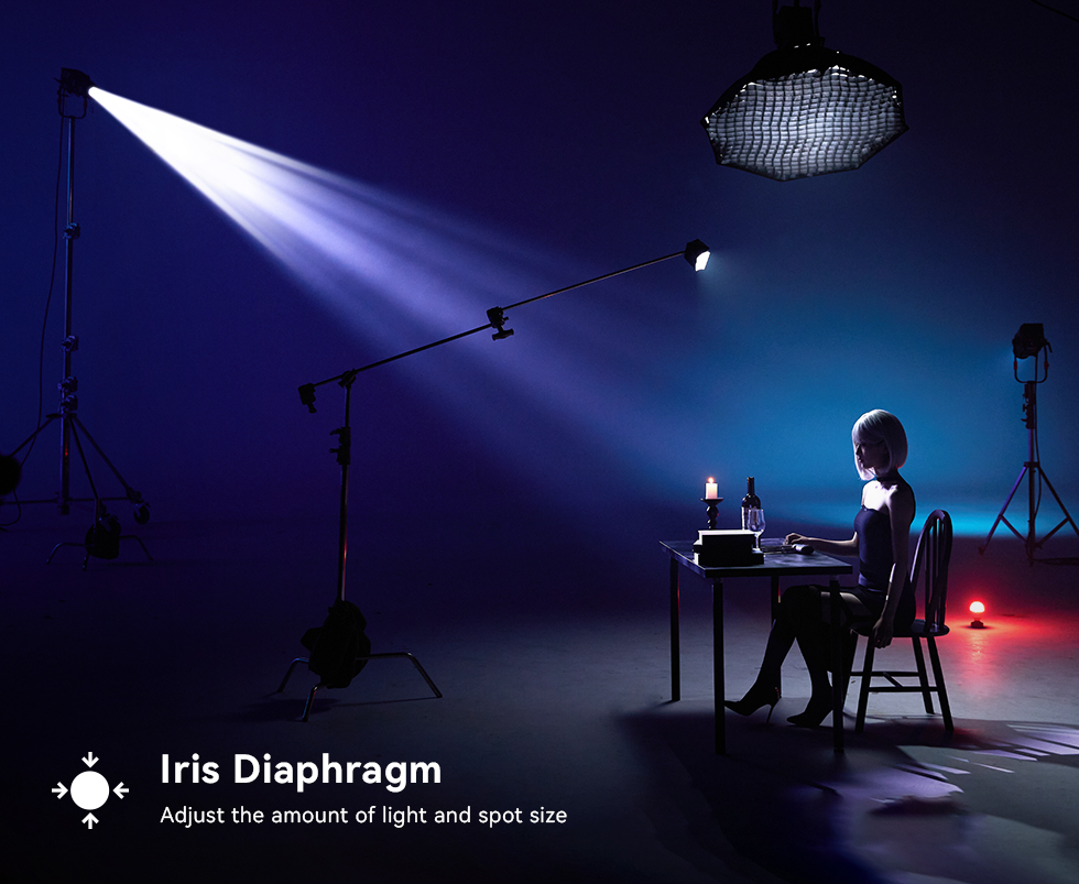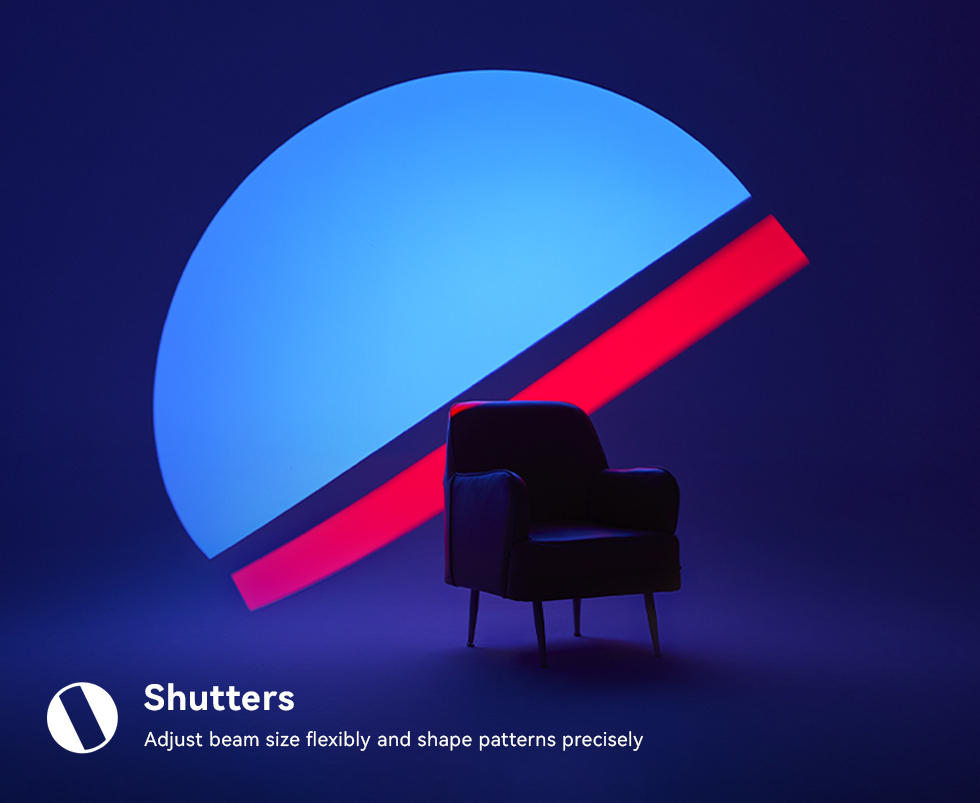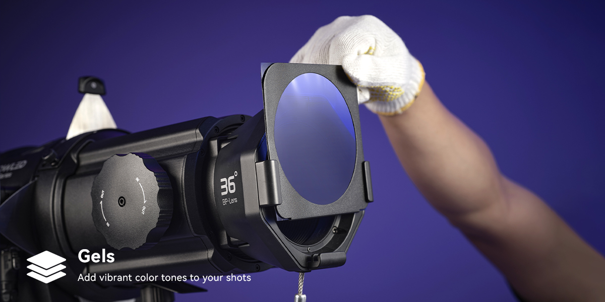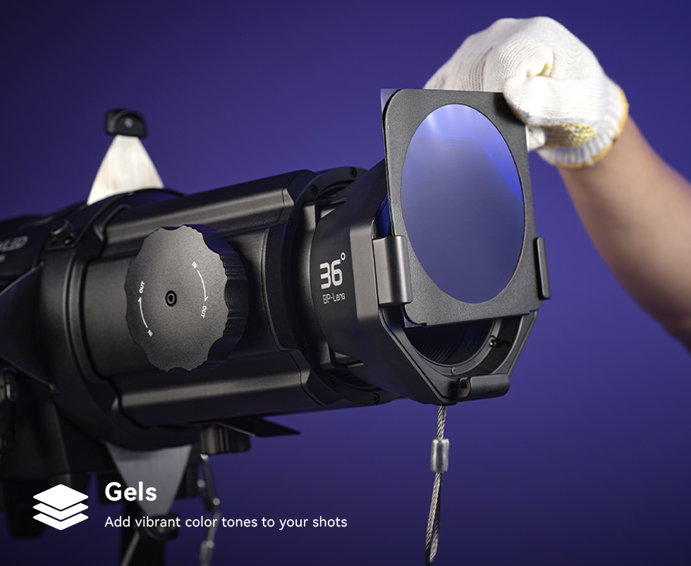 Paired with versatile accessories- iris diaphragm, gobos, shutters, and gels -the BP Projection Attachment enables precise adjustments to beam shape, color, and size,Create spotlights, follows pots, and beam patterns, unlocking creative potential for dynamic visual storytelling.